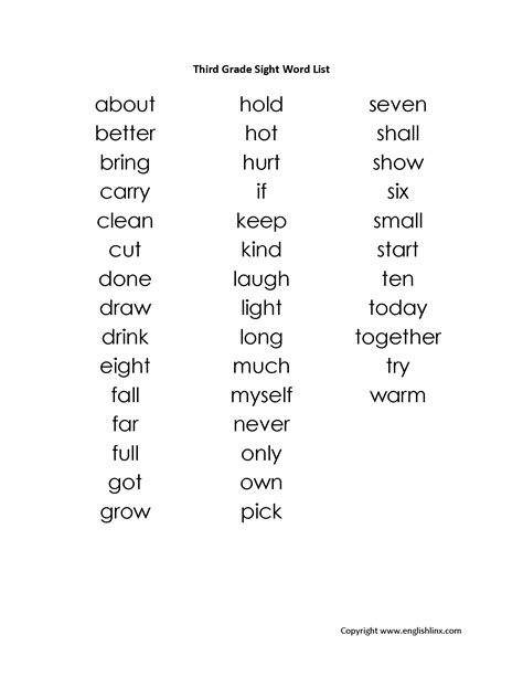 Third Grade Dolch Sight Words.