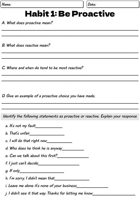 Be Proactive Worksheets Pdf. Web this worksheet is designed to go with habit 1: This lesson uses visuals and metaphors to help students have a more concrete idea of what being.